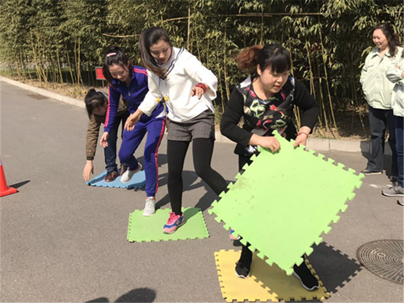 本届趣味运动会上技巧、竞技、乐趣并存,涵盖了包括踢毽子、袋鼠跳跳跳、摸石头过河、螃蟹赛跑、拔河、跳绳等九个比赛项目。